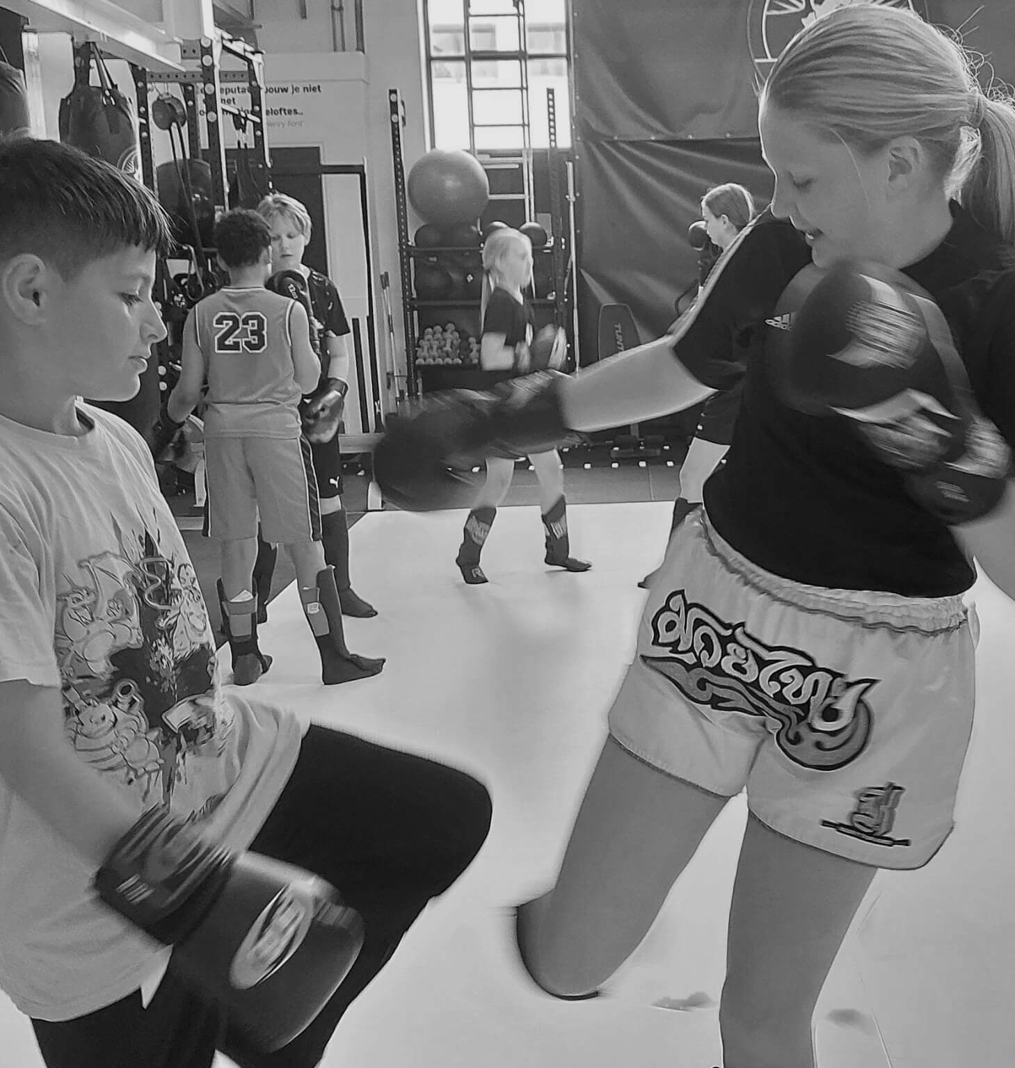We combineren kickboksoefeningen met spel, conditietraining en samenwerking. Er is aandacht voor elk kind – niemand wordt overgeslagen of overvraagd.